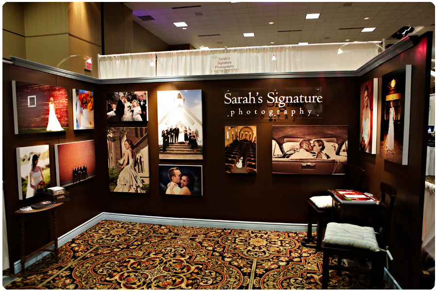 Bridal shows can be chaotic, hectic and pretty overwhelming. Not the most ideal environment to book a client.  So we designed our booth this year to be bigger but minimalistic. We got one of 6 premium booths that was 12 feet wide and 6 feet deep. I thought this would better allow traffic to flow into our booth and give a good surface area to display lots of larger prints. We also had a small seating area to look at albums. That was it! No obtrusive tables, no collage of prints on easels and no massive LCD TV slideshow on a constant loop. Just tangible prints at sizes no smaller than 16×20. We got some great feedback! We were also able to meet a few of our brides that have already booked us for 2010 and 2011! It was great to see everyone and we can not wait to shoot your wedding!